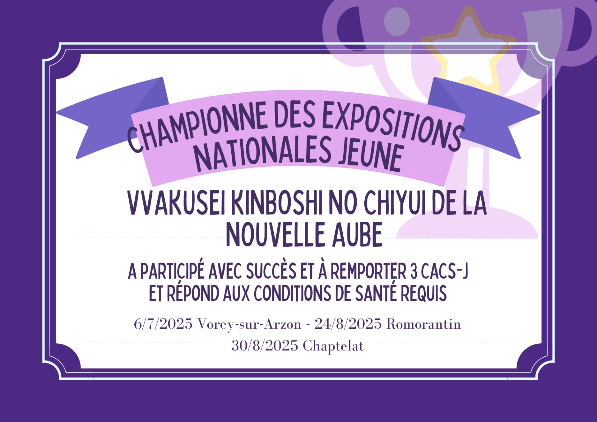 24 Aout 2025 - CACS - Romorantin - 1ère Excellent/2, CACS-J, M. Jeune, M. de Sexe Opposé, 2e Meilleur Jeune du Groupe 5 (Solange Roser 🇫🇷)