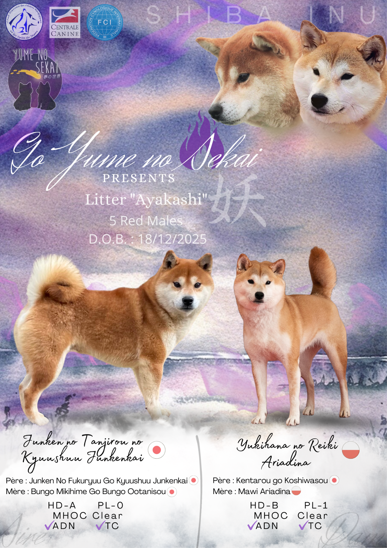 5 petits mâles roux sont nés de l'union de Yuna et Tanjiro : Tanuki, Kyubi, Oni, Kappa et Yurei !